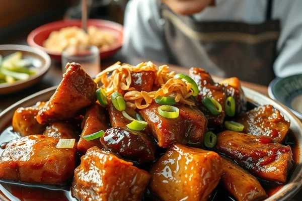 Makanan Babi Kecap adalah hidangan khas Indonesia yang lezat, menggabungkan daging babi dengan kecap manis, menciptakan cita rasa gurih dan aroma menggoda.