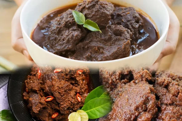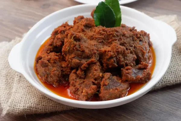 Rendang daging kerbau khas Indonesia, terkenal dengan cita rasa gurih dan tekstur lembut, cocok dinikmati sebagai hidangan istimewa yang penuh kelezatan dan tradisi.