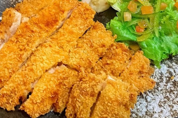 Nikmati kelezatan makanan chicken katsu, hidangan ayam gurih berlapis tepung renyah dan saus khas yang menggoda selera. Cocok untuk pecinta cita rasa Jepang otentik.