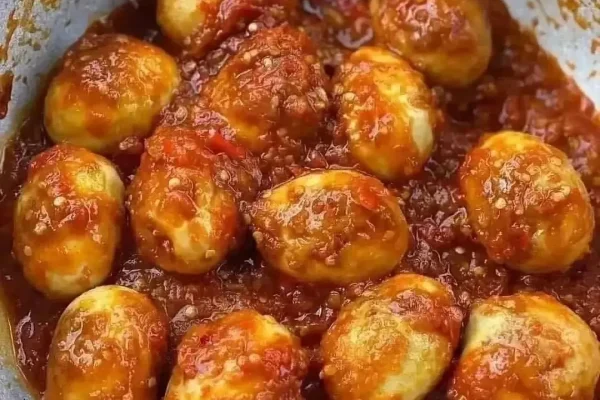 Nikmati kelezatan telur rebus bumbu merah yang gurih dan beraroma khas, cocok sebagai hidangan sederhana penuh cita rasa yang menggugah selera.