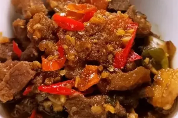 Nikmati kelezatan makanan tumis daging pedas yang gurih dan menggoda, cocok untuk pecinta rasa pedas dan penggemar masakan Indonesia yang autentik.