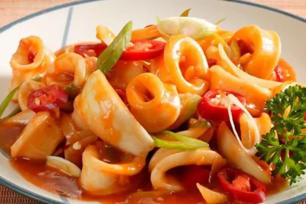Nikmati sensasi gurih dan segar dari cumi goreng saus asam manis, perpaduan sempurna rasa asin, manis, dan asam yang menggugah selera dalam setiap gigitan.